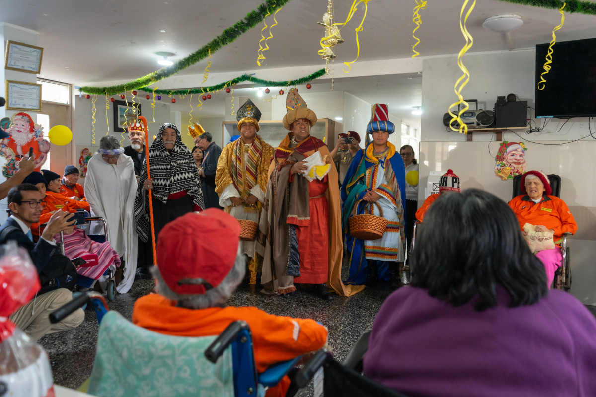 Tras la entrega de obsequios, los Reyes Magos visitaron el pabellón 9 del centro asistencial, donde residen los adultos mayores con dependencia parcial física.