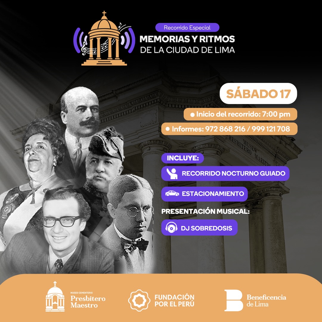 En el marco del 491. ° aniversario de Lima, la Sociedad de Beneficencia de Lima Metropolitana (SBLM), en coordinación con la Fundación por el Perú, organiza el recorrido especial “Memorias y ritmos” en el Museo Cementerio Presbítero Maestro.